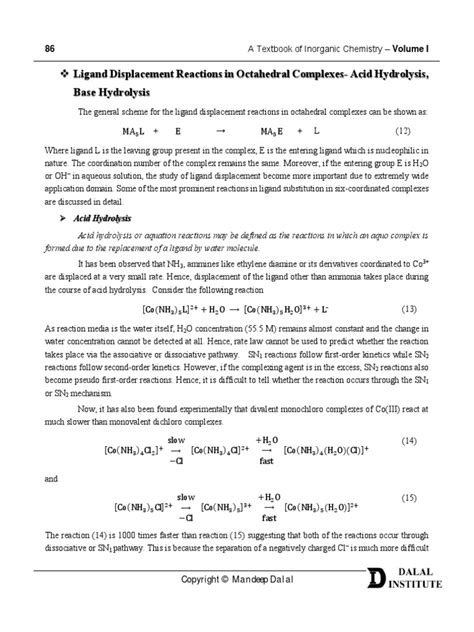 Before we jump headfirst into the nitty-gritty of anation reactions , let’s quickly refresh our memory on what makes octahedral complexes so special and why they’re such a perfect playground for studying these transformations. Imagine a central metal ion – this is the heart of our complex – surrounded by six ligands. These six ligands are arranged symmetrically around the metal in a three-dimensional shape resembling an octahedron. Think of it like a dice, but with the metal at the very center and a ligand on each face. This geometry, guys, is incredibly common and stable, making it a cornerstone of coordination chemistry. Many transition metals, especially those from the first row, readily form these types of complexes. Now, these ligands aren’t just sitting there idly; they’re bound to the metal, typically through dative bonds, meaning they donate electron pairs to the metal. The strength of these bonds and the electronic configuration of the metal center play a huge role in how reactive (or unreactive) the complex will be. We talk about complexes being either labile or inert . A labile complex is one where ligands can be swapped out relatively quickly, often within seconds or minutes. An inert complex, on the other hand, holds onto its ligands much more tightly, and substitution reactions can take hours, days, or even longer to complete. This distinction is super important when we’re thinking about anation reactions , because the lability of the starting complex will largely determine how easily that incoming anionic ligand can muscle its way in. For example, complexes of Cr(III) and Co(III) are notoriously inert, while Ni(II) and Cu(II) complexes are often quite labile. This difference isn’t arbitrary; it’s rooted in the electronic structure of the metal ion, specifically its d-electron configuration and crystal field stabilization energy. When we study anation reactions in octahedral complexes , we’re often looking at the mechanisms through which these ligand substitutions occur. These mechanisms are generally categorized into three main types: dissociative (D) , associative (A) , and interchange (I) . In a dissociative mechanism, the leaving ligand first detaches from the metal, creating a transient, five-coordinate intermediate, before the incoming ligand binds. It’s like someone leaving the party before a new guest arrives. Conversely, an associative mechanism involves the incoming ligand first binding to the metal, forming a seven-coordinate intermediate, before the leaving ligand departs. Think of it as squeezing into a crowded room before someone eventually leaves. The interchange mechanism is a bit of a hybrid, where the bond breaking and bond making occur simultaneously in a concerted step, without forming a stable intermediate. For anation reactions in octahedral complexes , the dissociative (D) and interchange (I) mechanisms are particularly prevalent, especially for inert or moderately labile complexes. This detailed understanding of their structure and typical reaction pathways sets the stage perfectly for understanding how anionic ligands perform their specific swap in an anation process. It’s all about the interplay between the metal, its existing ligands, and that eager incoming anion, all within the robust framework of the octahedron. Pretty cool, right?