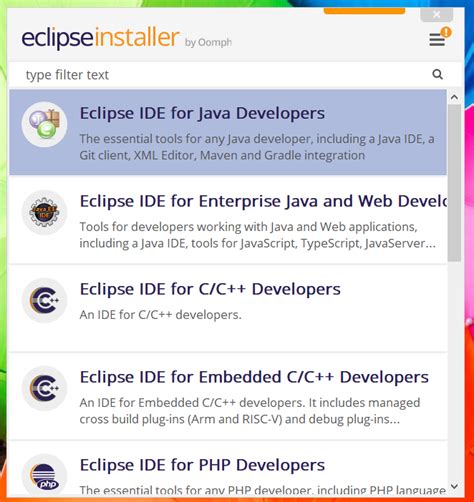 2. Find the “Eclipse IDE for Java Developers” package.