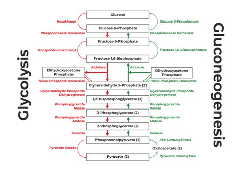 One of the most significant differences lies in the direction of the pathways. Glycolysis breaks down glucose to yield energy, while gluconeogenesis synthesizes glucose, requiring energy input. This difference is reflected in the enzymes that regulate each pathway. Glycolysis is stimulated by insulin, which signals high blood glucose levels and the need to store energy. Insulin activates key enzymes in glycolysis, such as phosphofructokinase-1 (PFK-1). Conversely, gluconeogenesis is inhibited by insulin and stimulated by glucagon, which signals low blood glucose levels and the need to produce more glucose. Glucagon activates enzymes unique to gluconeogenesis, such as fructose-1,6-bisphosphatase and glucose-6-phosphatase. These hormonal controls ensure that the two pathways are reciprocally regulated, preventing futile cycling and maintaining efficient energy balance.