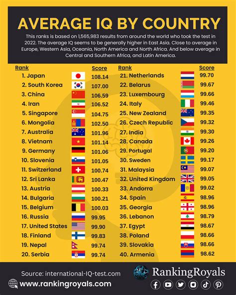 • Policy Implications: Understanding IQ rankings can have policy implications. Governments can use this data to inform educational policies, healthcare initiatives, and social programs. Prioritizing early childhood education, ensuring access to quality education for all, and promoting socioeconomic equity can lead to improved cognitive outcomes.