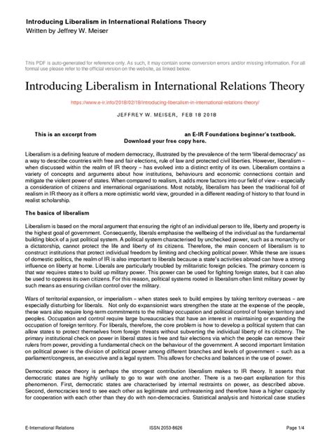 Liberal Theory In International Relations
