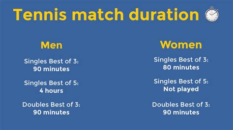 • Breaks and Timeouts: The number and length of breaks and timeouts taken during a match can impact the total duration. Players are entitled to rest periods between games and sets, with the timing being set by the rules of tennis. These breaks, along with medical timeouts or coaching timeouts, can add minutes to the overall match time, especially if they are frequent or extended.