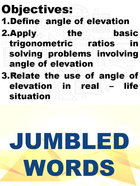 • Tangent (tan): Relates the opposite side to the adjacent side ( tan(θ) = Opposite / Adjacent ). This is the most common one for angle of elevation problems because you often know the height and the horizontal distance, or vice versa, and you want to find the angle.