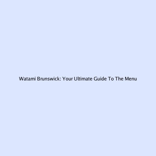 Exploring the Watami Brunswick Menu: A Culinary Adventure