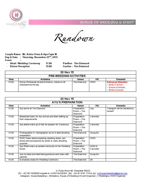 Alright, let’s get down to the nitty-gritty. What exactly should you include in your wedding reception rundown PDF ? Think of this section as your ultimate checklist. The more detailed you are, the better. Here are the essential elements: