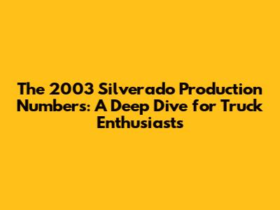 2003 Silverado Production: The Numbers You Need