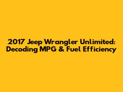 The EPA typically provides two main MPG ratings: city and highway. For the 2017 Jeep Wrangler Unlimited, the MPG numbers look something like this (these can vary slightly depending on the specific configuration):
