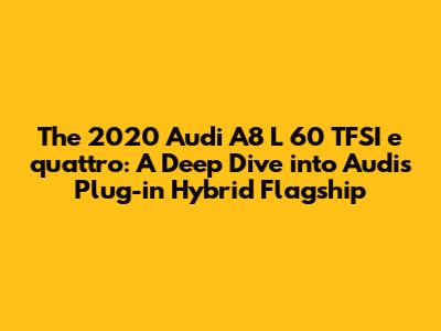 Hey everyone! Today, we're going to get up close and personal with a seriously impressive ride: the 2020 Audi A8 L 60 TFSI e quattro. If you're in the market for a luxury sedan that doesn't compromise on performance or efficiency, or if you're just a fellow car enthusiast who loves to geek out on the latest tech, then buckle up! This car is a fascinating blend of Audi's renowned luxury, potent V6 power, and the added benefits of a plug-in hybrid system. We're talking about the long-wheelbase version (that's the 'L' for you guys!), the '60 TFSI e' designation telling us it's a powerful hybrid variant, and of course, the legendary quattro all-wheel-drive system. It’s a mouthful, but what it represents is a sophisticated approach to flagship motoring in an era where sustainability is becoming increasingly important. Audi really pulled out all the stops with this one, aiming to deliver an experience that's both exhilarating and responsible. Let's break down what makes this particular A8 stand out from the crowd.