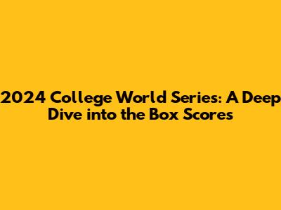 Hey sports fanatics! Are you ready for a breakdown of the 2024 College World Series? It was an absolute nail-biter, wasn't it? We're talking about the best college baseball teams battling it out for the ultimate crown. If you're anything like me, you were glued to the TV, or streaming it on your phone, soaking up every pitch, every hit, every diving catch. But what about the nitty-gritty? The stats? The box scores that tell the real story? Well, grab your mitt and get ready to dive in because we're about to dissect the 2024 College World Series box scores, uncovering the key moments, star performances, and the strategies that led teams to victory (or heartbreak). This isn't just about the final score, guys; it's about understanding how those scores were achieved. We will delve into the pitching duels, the offensive explosions, and the defensive gems that defined the tournament. We'll be looking at the teams that went all the way and the ones that just missed out, breaking down their journeys and highlighting the pivotal plays. So, whether you're a seasoned baseball guru or a casual fan, this is your ultimate guide to the 2024 College World Series box scores, providing you with all the insights you need to truly appreciate the drama and excitement of this incredible tournament.