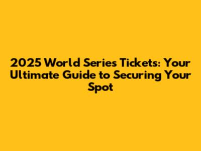 2025 World Series Tickets: Your Ultimate Guide