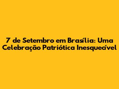 Portanto, o 7 de Setembro em Brasília é muito mais do que um feriado. É uma oportunidade de celebrar a história, de fortalecer os laços com a nação e de reafirmar o compromisso com os valores democráticos e patrióticos. É um momento de união, de reflexão e de esperança no futuro do Brasil.