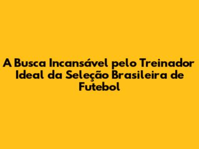 A Busca Incansável Pelo Treinador Ideal Da Seleção Brasileira