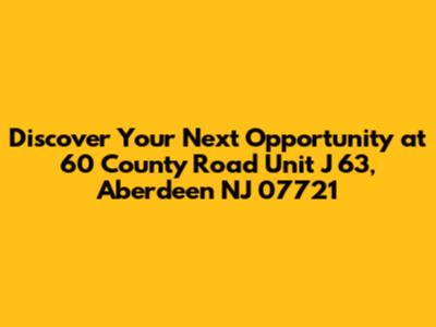 Hey everyone! Today, we're diving into a fantastic location that might just be the perfect spot for your next venture or residence: 60 County Road Unit J 63 in Aberdeen, New Jersey, with the zip code 07721. This isn't just any address; it's a gateway to the vibrant community and strategic advantages that Aberdeen, NJ, has to offer. Whether you're a savvy investor, a growing business, or someone looking for a prime piece of real estate, understanding the nuances of this specific unit and its surroundings is key. Let's break down what makes this location so appealing, from its accessibility to the lifestyle it promises.
