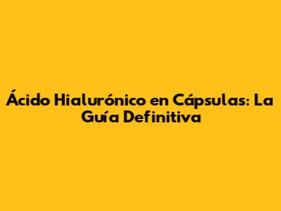 Ácido Hialurónico En Cápsulas: Guía Completa