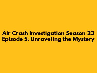 Hey everyone, and welcome back to our deep dive into the thrilling world of Air Crash Investigation! Today, guys, we're dissecting Season 23 Episode 5, an episode that really sticks with you. If you're a fan of aviation mysteries and understanding the intricate details that lead to a disaster, then this one's for you. We'll be breaking down the key elements, exploring the theories, and looking at how Air Crash Investigation brings these complex stories to life for us.