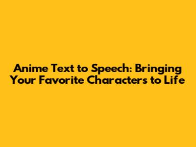 Anime Text To Speech: Bring Your Favorite Characters To Life