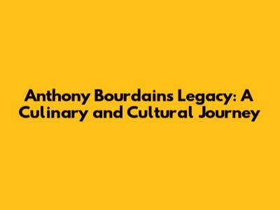 Anthony Bourdain's Legacy: A Culinary And Cultural Journey