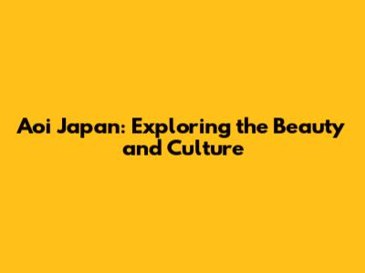 Aoi Japan: Exploring The Beauty And Culture
