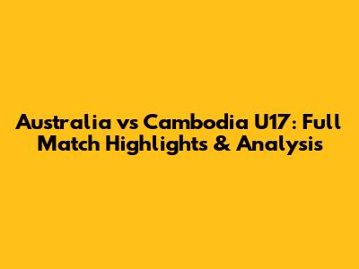 Australia Vs Cambodia U17: Full Match Highlights & Analysis