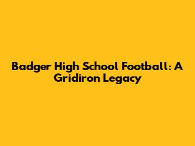 Badger High School Football: A Comprehensive Guide