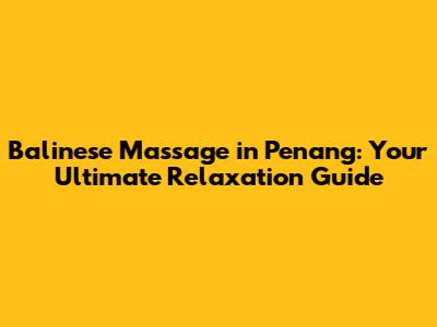 Balinese Massage In Penang: Your Ultimate Relaxation Guide