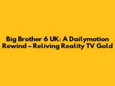 Accessing Big Brother 6 UK on Dailymotion: A Quick Guide