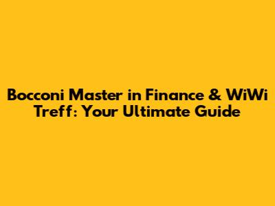 Bocconi Master In Finance & WiWi Treff: Your Ultimate Guide