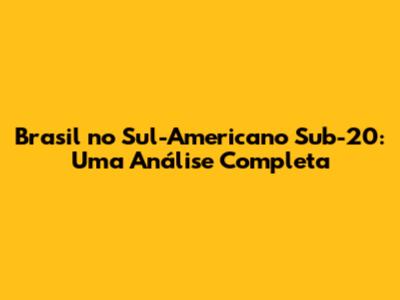 Brasil No Sul-Americano Sub-20: Uma Análise Completa
