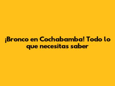 ¡Bronco En Cochabamba! Todo Lo Que Necesitas Saber