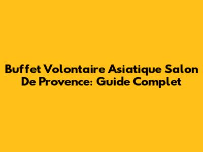 Buffet Volontaire Asiatique Salon De Provence: Guide Complet