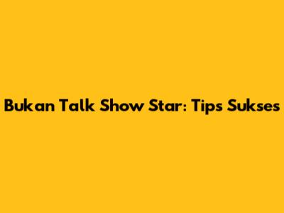 Bukan Talk Show Star: Tips Sukses