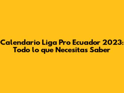 Calendario Liga Pro Ecuador 2023: Partidos, Fechas Y Más