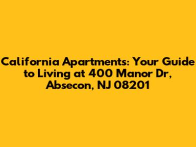 Hey guys! Are you on the hunt for a fantastic apartment in Absecon, New Jersey? Look no further! We're diving deep into everything you need to know about California Apartments, located at the prime address of 400 Manor Dr, Absecon, NJ 08201. This guide will walk you through the perks of living here, the neighborhood vibes, and why it might just be the perfect place for you to call home. Let’s get started!