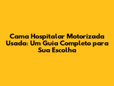 Cama Hospitalar Motorizada Usada: Guia Completo E Dicas Essenciais