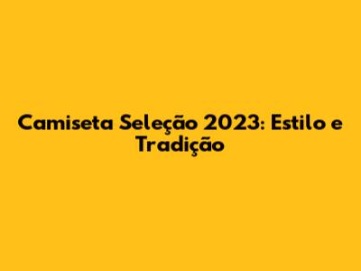 Camiseta Seleção 2023: Estilo E Tradição