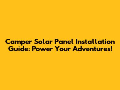 Camper Solar Panel Installation Guide
