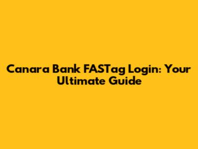 Canara Bank FASTag Login: Your Complete Guide