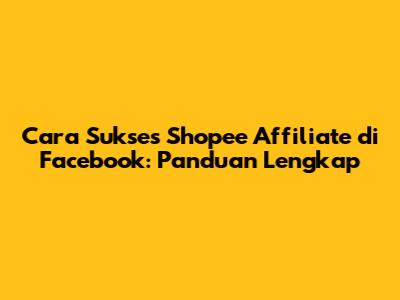 Cara Sukses Shopee Affiliate Di Facebook