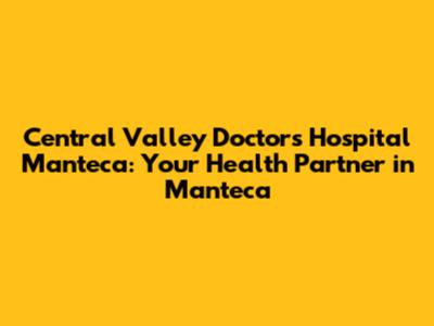 Hey guys! Let's dive into everything you need to know about Central Valley Doctors Hospital in Manteca. If you're looking for quality healthcare in the heart of the Central Valley, this hospital is a key player. We'll explore its services, what makes it stand out, and why it's an important part of the Manteca community. So, buckle up, and let's get started!