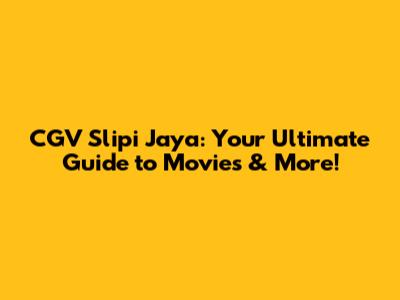 CGV Slipi Jaya: Your Ultimate Guide To Movies & More!
