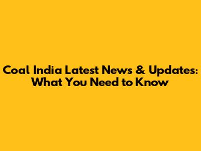 Coal India Latest News & Updates: What You Need To Know