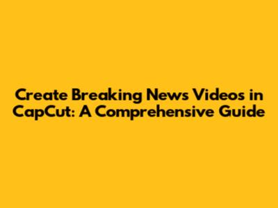 Create Breaking News Videos In CapCut: A Comprehensive Guide