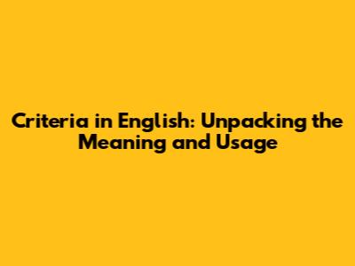 Criteria In English: Translation, Usage, And Examples