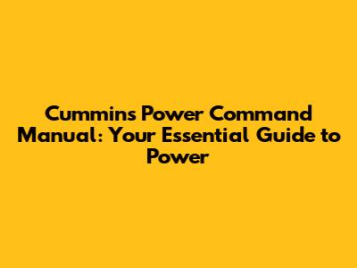 Cummins Power Command Manual: Your Guide