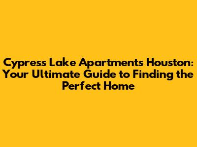 Cypress Lake Apartments: Your Houston Home Guide