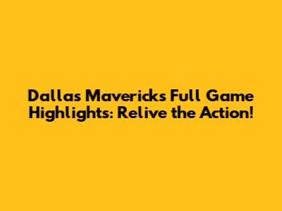Finding the Best Dallas Mavericks Full Game Highlights