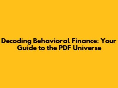 Decoding Behavioral Finance: Your Guide To The PDF Universe