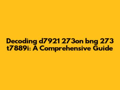 Decoding D7921 273on Bng 273 T7889i: A Comprehensive Guide