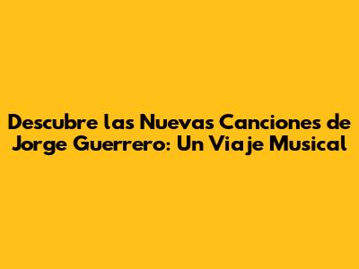 Descubre Las Nuevas Canciones De Jorge Guerrero: Un Viaje Musical