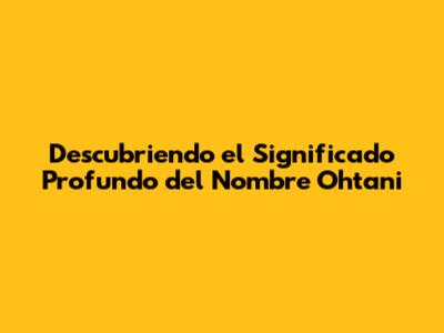 Descubriendo El Significado Profundo Del Nombre Ohtani